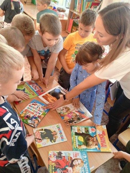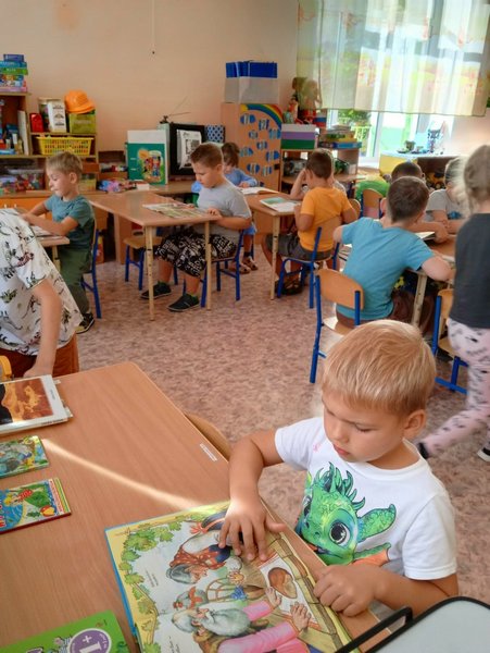На мероприятии ребятам были предложены к просмотру детские книги, журналы из нашей библиотеки. Ребята представили, что они находятся в читальном зале библиотеки, сидели за столом и изучали информацию.