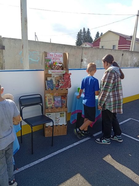 На мероприятии библиотекарь Мария Юрьевна представила книжную выставку «Три Спаса жизнь красят».