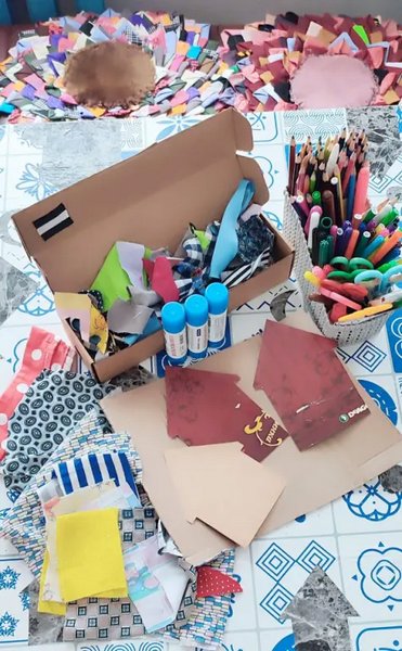 В рамках занятия каждый участник получил лоскутки ткани разных цветов, ножницы, клей и шаблоны.