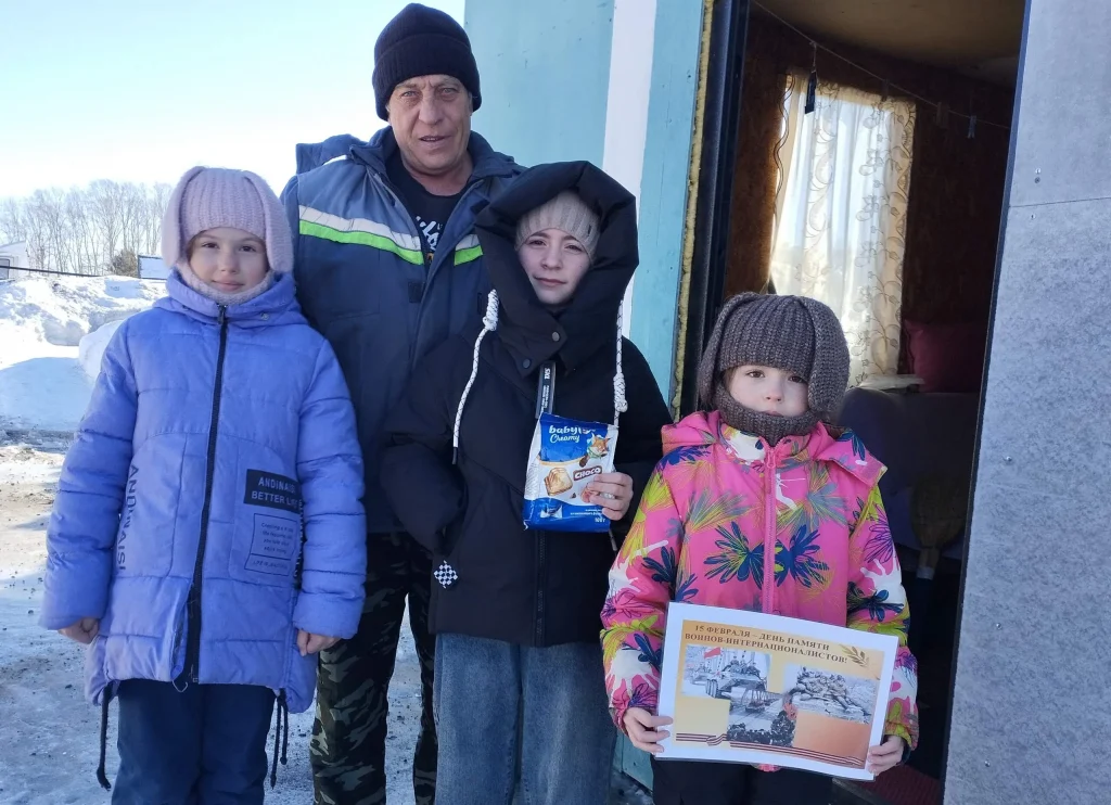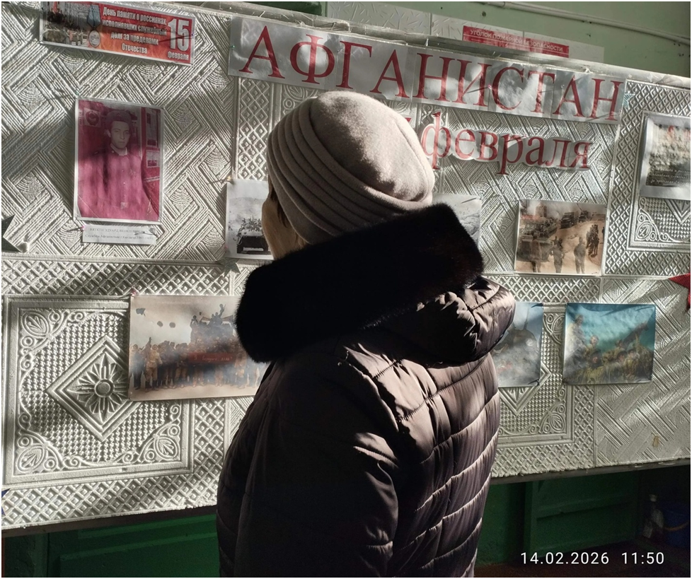 15 февраля особый день для тех, кто участвовал в Афганской войне. Эта дата начала вывода советских войск из Афганистана. Офицеры и солдаты, прошедшие через Афганскую войну, с честью и достоинством выполнили свой интернациональный долг. В нашем поселке остался один ветеран боевых действий в Афганистане — Вяткин Эдуард Яковлевич. В связи с этой датой накануне 14 февраля ребята поздравили Эдуарда Яковлевича на дому, прочитали ему стихи, подарили открытку и сладости к чаю, а в библиотеке был оформлен стенд с фотографиями нашего героя ветерана.